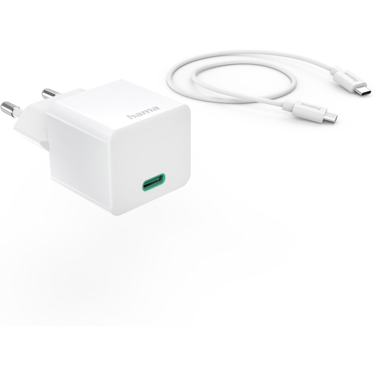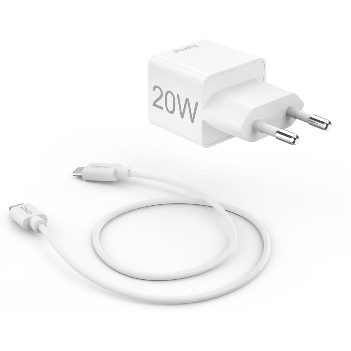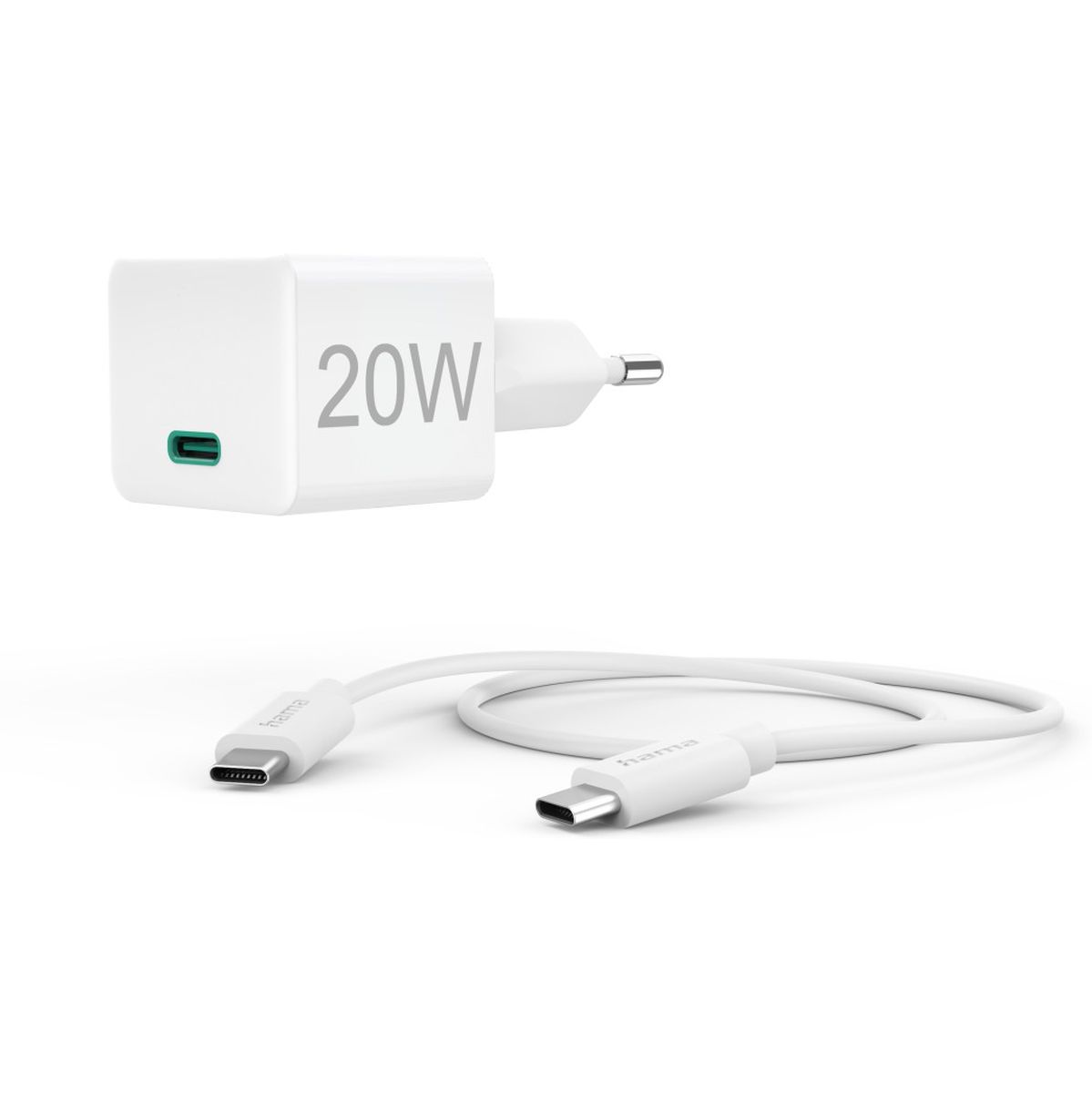 Hama Fast Charger w/ Charging Cable USB-C Mini-Charger PD 20W 1m White