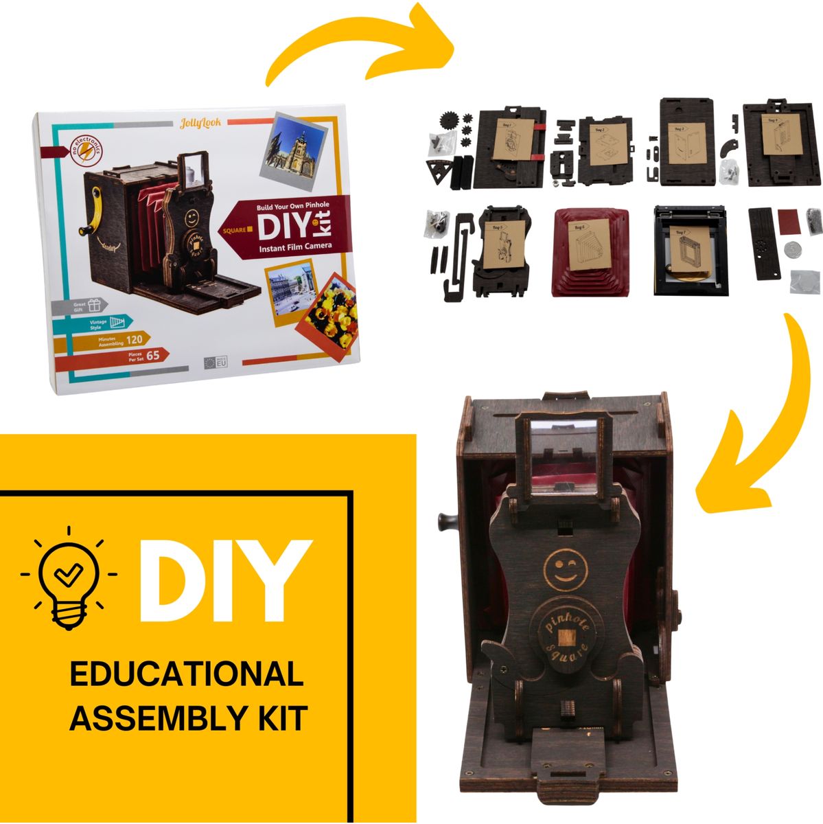 JollyLook Pinhole Square Instant Film Camera Wood Dark B