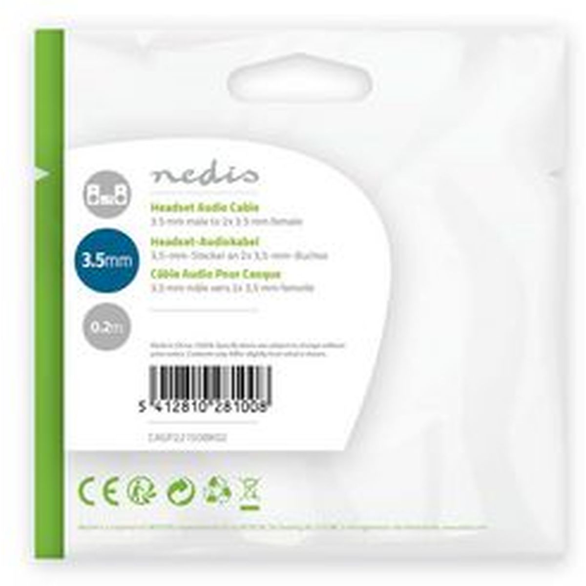 Nedis Audio Cable Headset 3.5mm M-2X 3.5mm F 0.2m BK